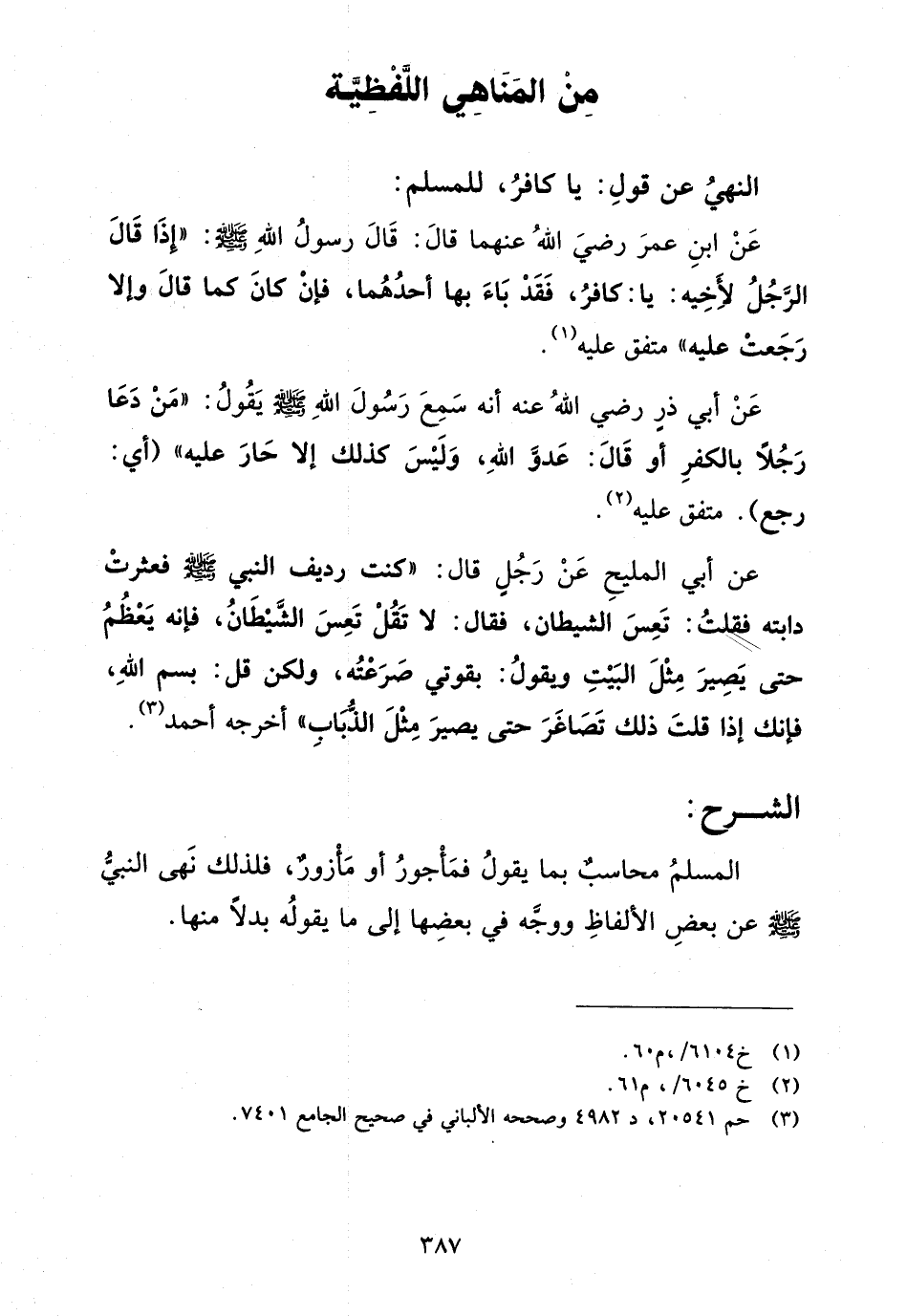 النهي عن قول: يا كافر، للمسلم: