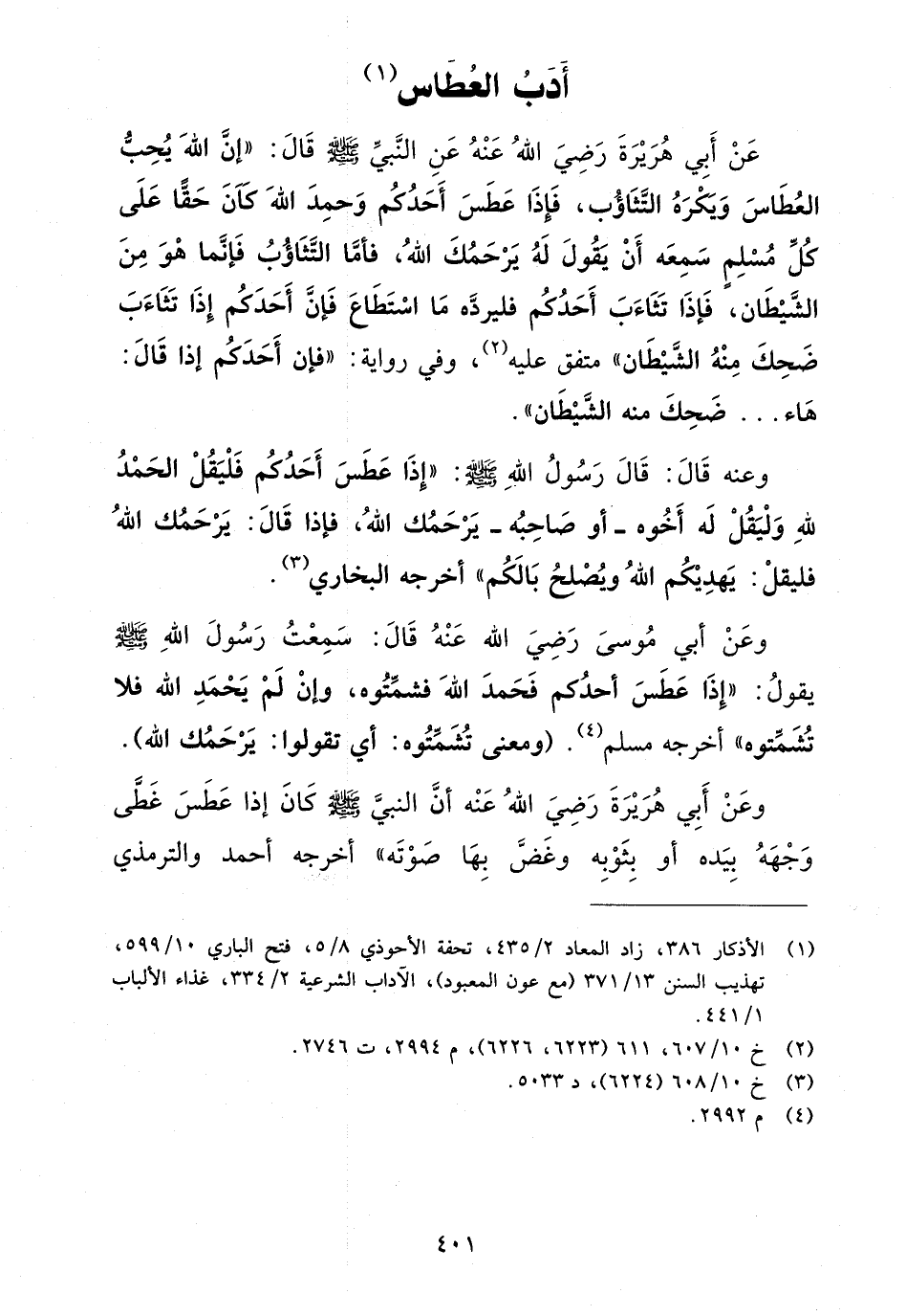 (¬1) الأذكار 386،زاد المعاد 2/ 435،تحفة الأحوذي 8/ 5،فتح الباري 10/ 599،تهذيب السنن 13/ 371 (مع عون المعبود)، الآداب الشرعية 2/ 334، غذاء الألباب 1/ 441.