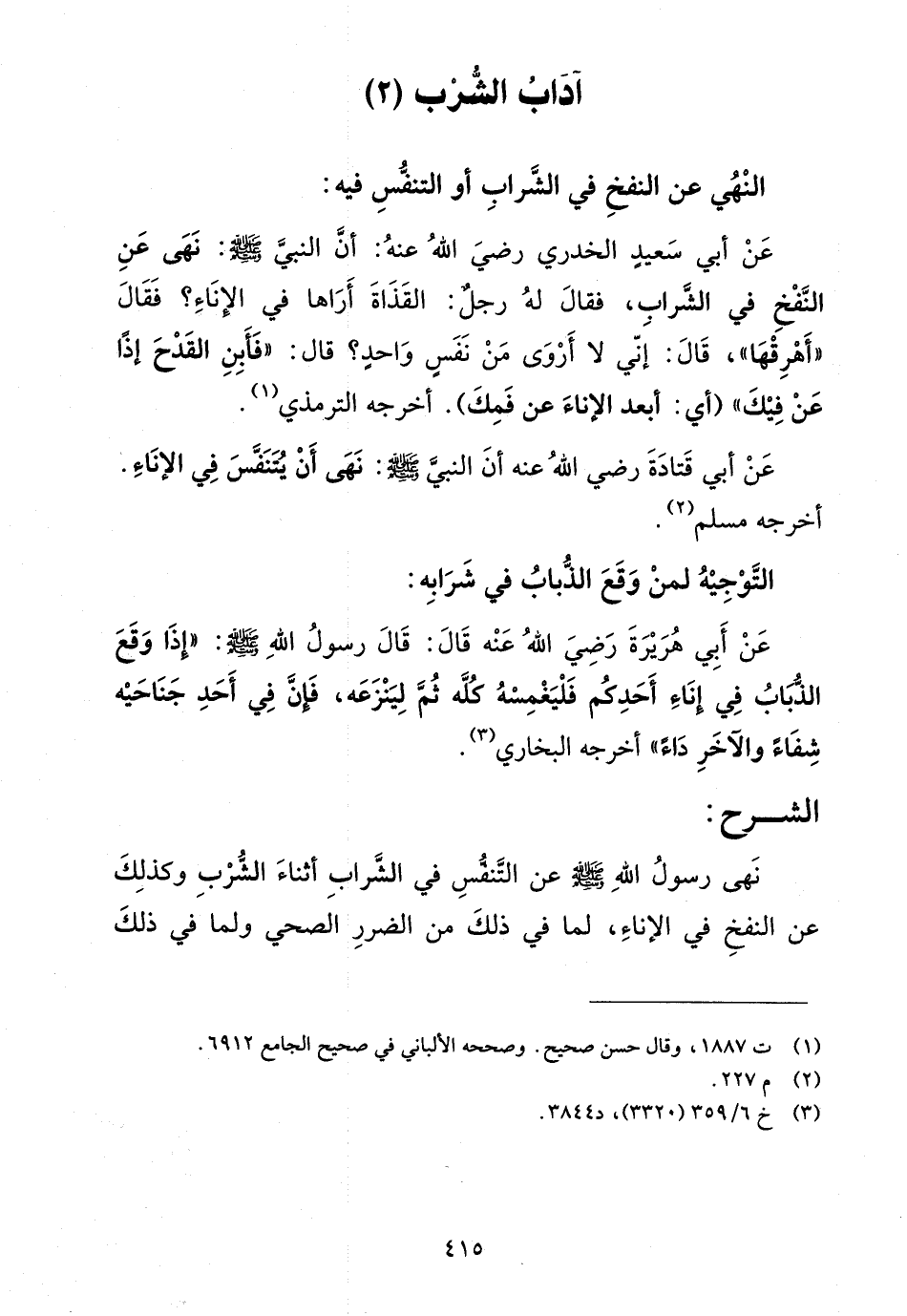 النهي عن النفخ في الشراب أو التنفس فيه: