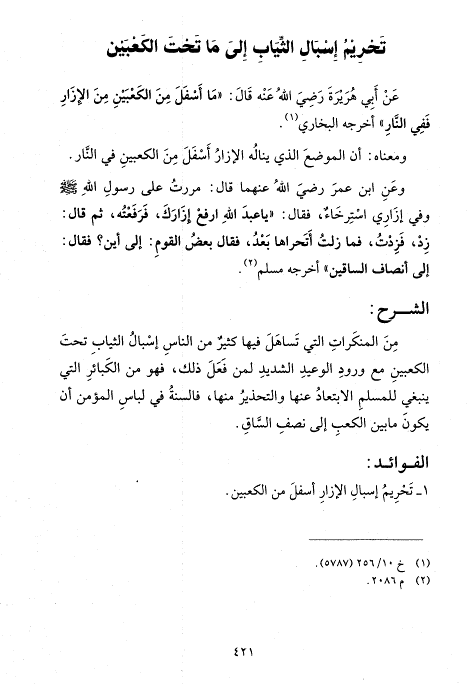 - تحريم إسبال الإزار أسفل من الكعبين.