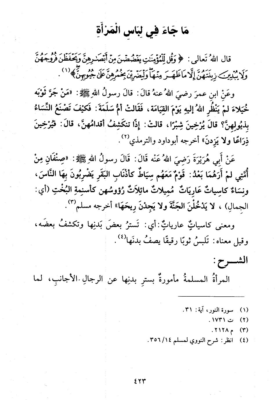 قال الله تعالى: {وَقُل لِّلْمُؤْمِنَاتِ يَغْضُضْنَ مِنْ أَبْصَارِهِنَّ وَيَحْفَظْنَ فُرُوجَهُنَّ وَلا يُبْدِينَ زِينَتَهُنَّ إِلاَّ مَا ظَهَرَ مِنْهَا وَلْيَضْرِبْنَ بِخُمُرِهِنَّ عَلَى جُيُوبِهِنَّ} (¬1).