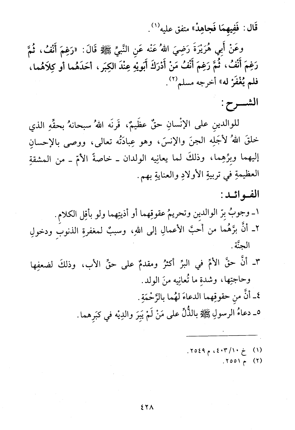 - وجوب بر الوالدين وتحريم عقوقهما أو أذيتهما ولو بأقل الكلام.