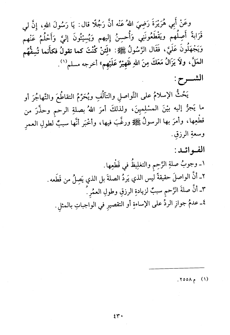 - أن الواصل حقيقة ليس الذي يرد الصلة بل الذي يصل من قطعه.
