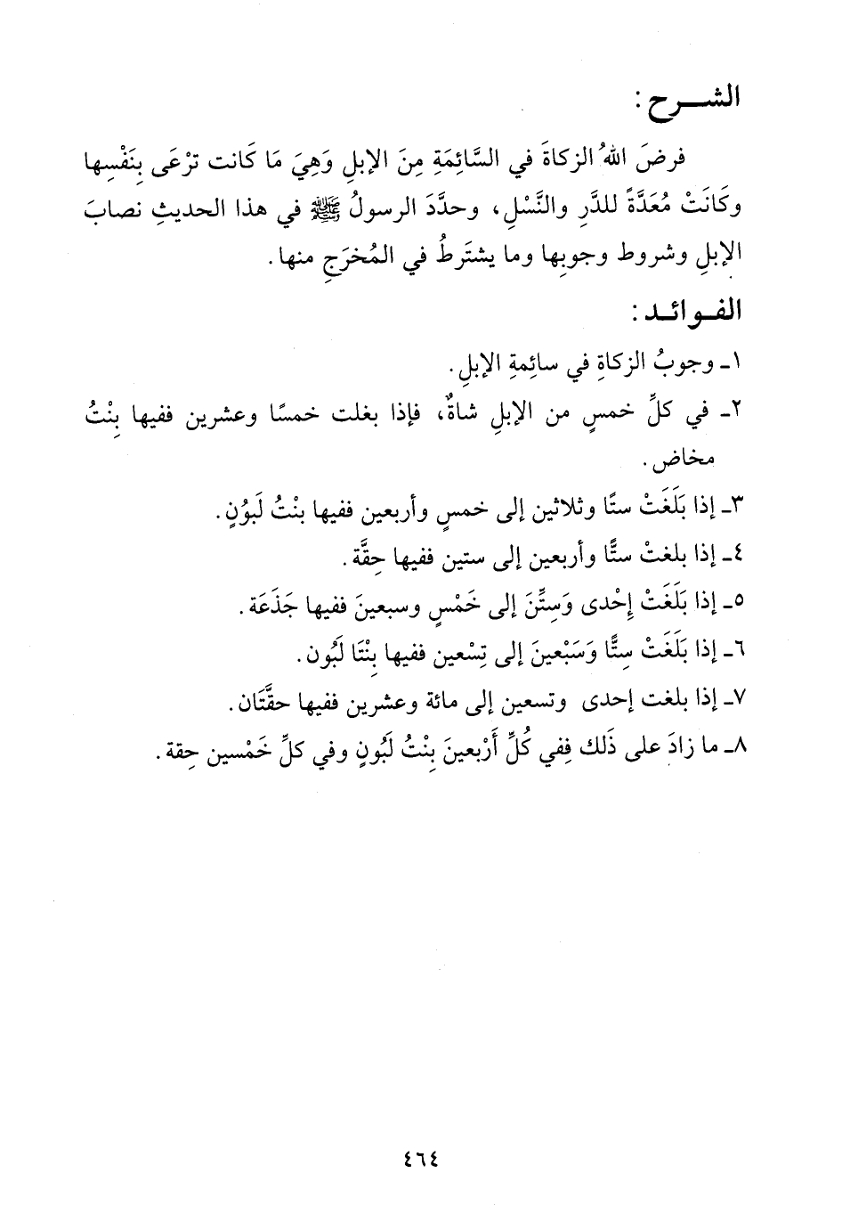 - وجوب الزكاة في سائمة الإبل.