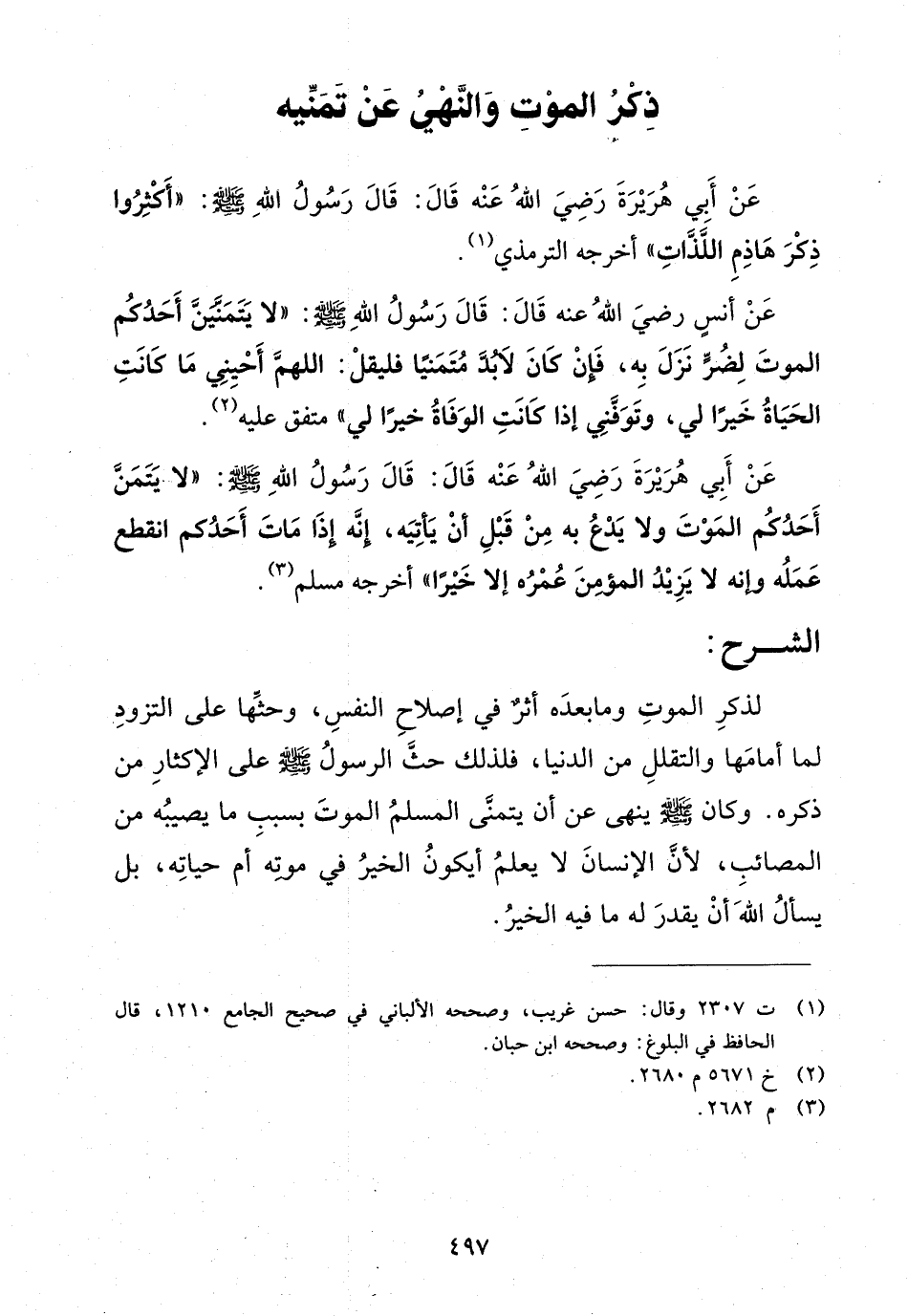 ذكر الموت والنهي عن تمنيه