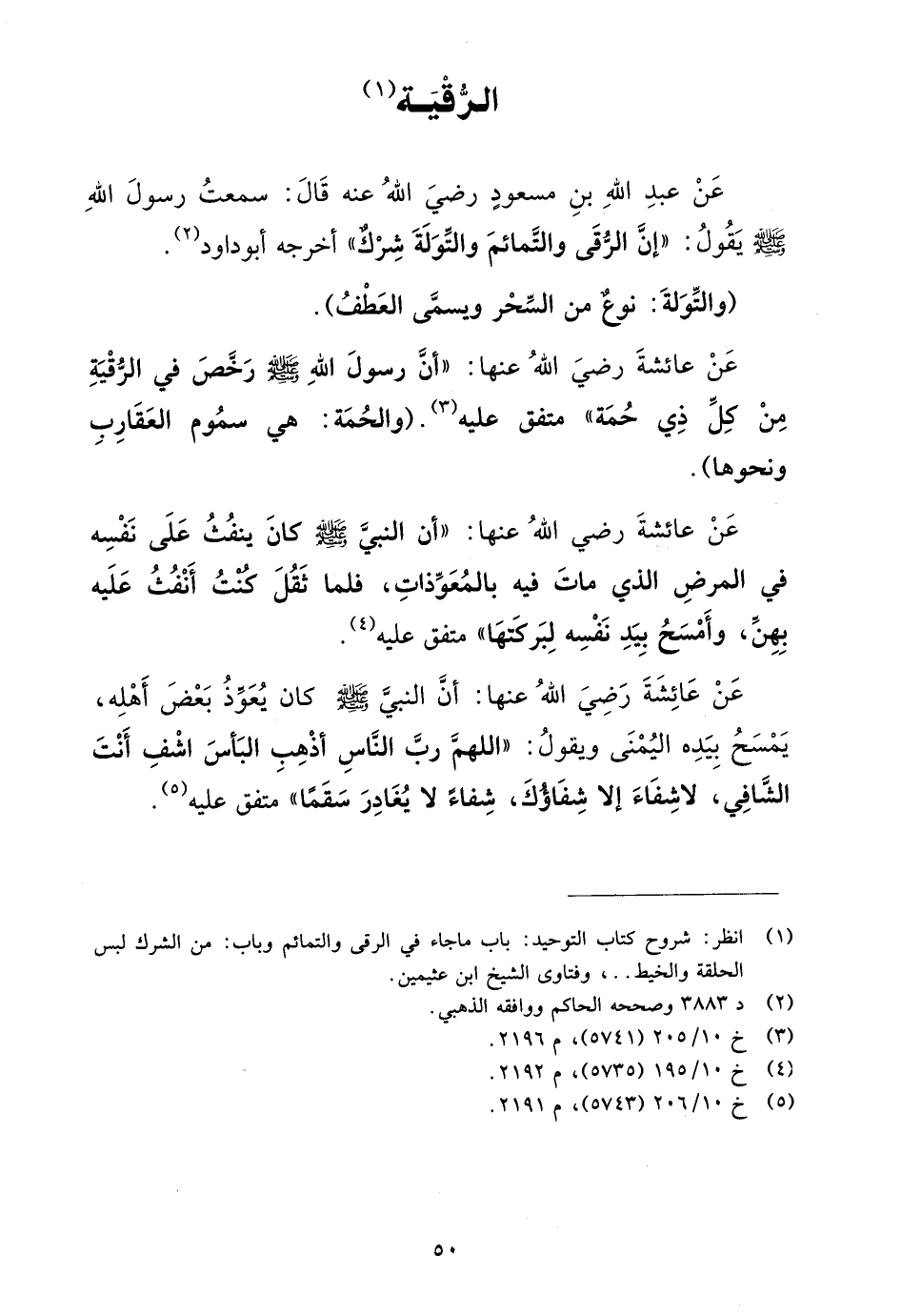 عن عبد الله بن مسعود رضي الله عنه قال: سمعت رسول الله صلى الله عليه وسلم يقول: "إن الرقى والتمائم والتولة شرك" أخرجه أبو داود (¬2).