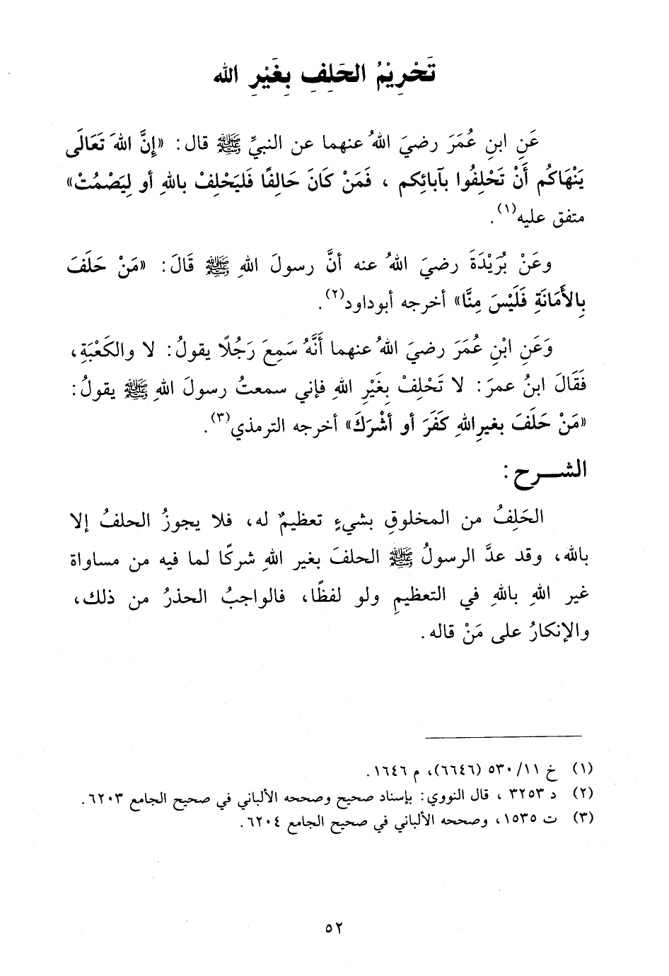 وعن ابن عمر رضي الله عنهما أنه سمع رجلاً يقول: لا والكعبة، فقال ابن عمر: لا تحلف بغير الله فإني سمعت رسول الله صلى الله عليه وسلم يقول: "من حلف بغير الله كفر أو أشرك" أخرجه الترمذي (¬3).