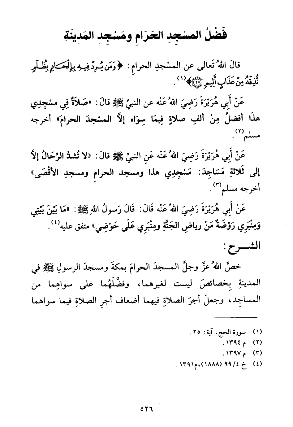 عن أبي هريرة رضي الله عنه عن النبي صلى الله عليه وسلم قال: "لا تشد الرحال إلا إلى ثلاثة مساجد: مسجدي هذا ومسجد الحرام ومسجد الأقصى"أخرجه مسلم (¬3).