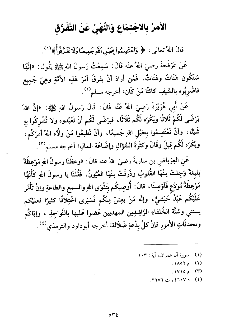 قال الله تعالى: {وَاعْتَصِمُوا بِحَبْلِ اللهِ جَمِيعًا وَلاَ تَفَرَّقُوا} (¬1).