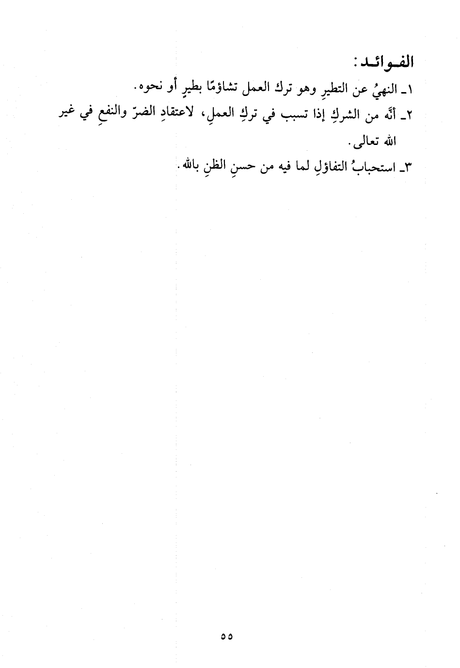 - النهي عن التطير وهو ترك العمل تشاؤماً بطير أو نحوه.