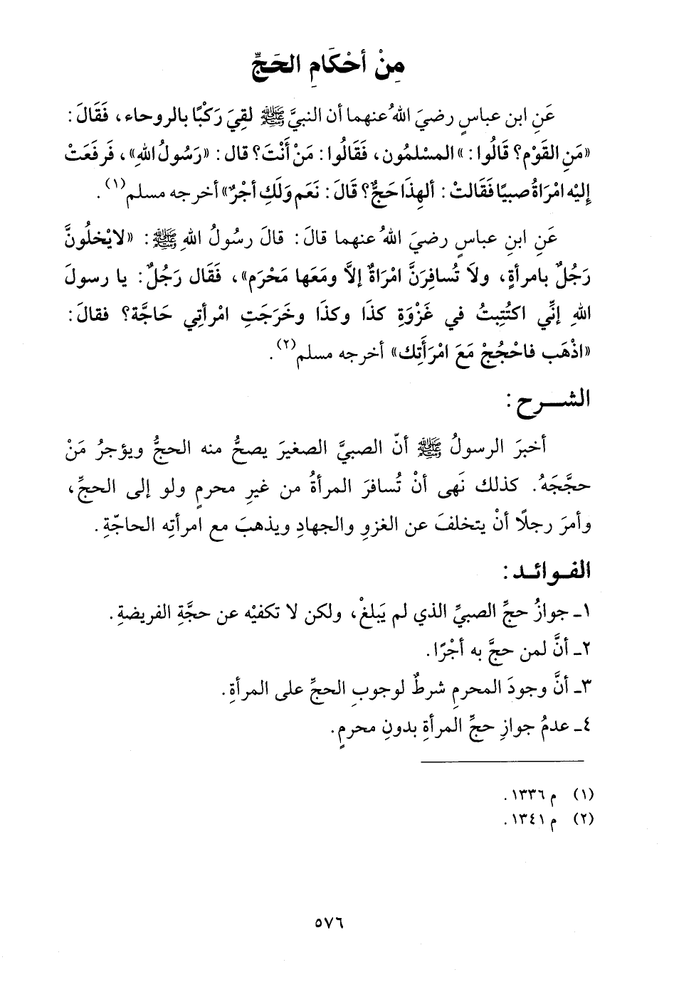 عن ابن عباس رضي الله عنهما قال: قال رسول الله صلى الله عليه وسلم: "لا يخلون رجل بامرأة، ولا تسافرن امرأة إلا ومعها محرم"، فقال رجل: يا رسول الله إني اكتتبت في غزوة كذا وكذا وخرجت امرأتي حاجة؟ فقال: "اذهب فاحجج مع امرأتك"أخرجه مسلم (¬2).