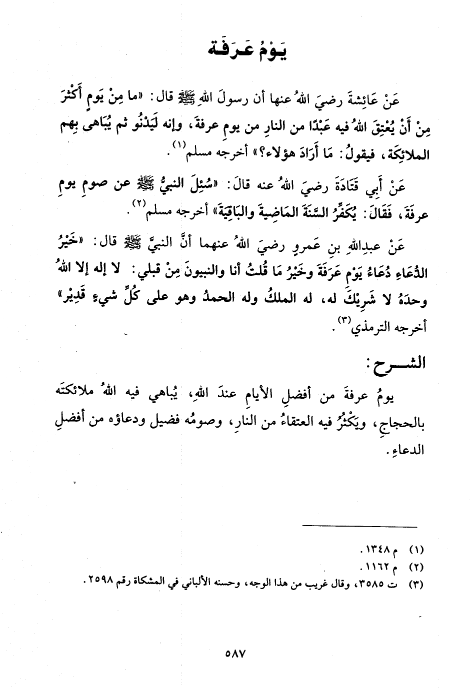 عن عبد الله بن عمرو رضي الله عنهما أن النبي صلى الله عليه وسلم قال: "خير الدعاء دعاء يوم عرفة وخير ما قلت أنا والنبيون من قبلي: لا إله إلا الله وحده لا شريك له، له الملك وله الحمد وهو على كل شيء قدير"أخرجه الترمذي (¬3).