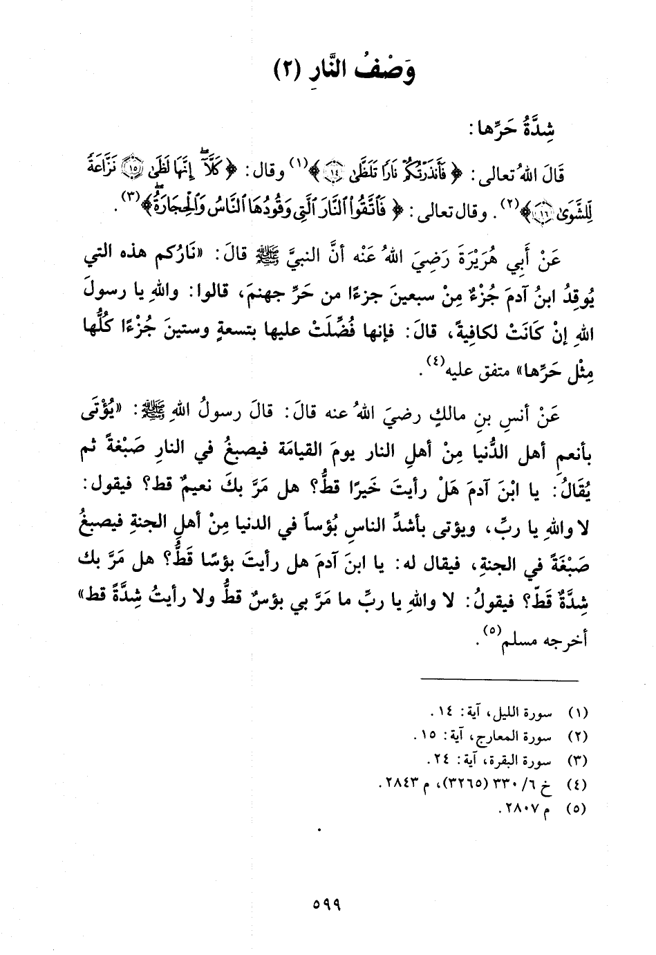 قال الله تعالى: {فَأَنذَرْتُكُمْ نَارًا تَلَظَّى} (¬1). وقال: {كَلاَّ إِنَّهَا لَظَى {} نَزَّاعَةً لِّلشَّوَى} (¬2). وقال تعالى: {فَاتَّقُوا النَّارَ الَّتِي وَقُودُهَا النَّاسُ وَالْحِجَارَةُ} (¬3).