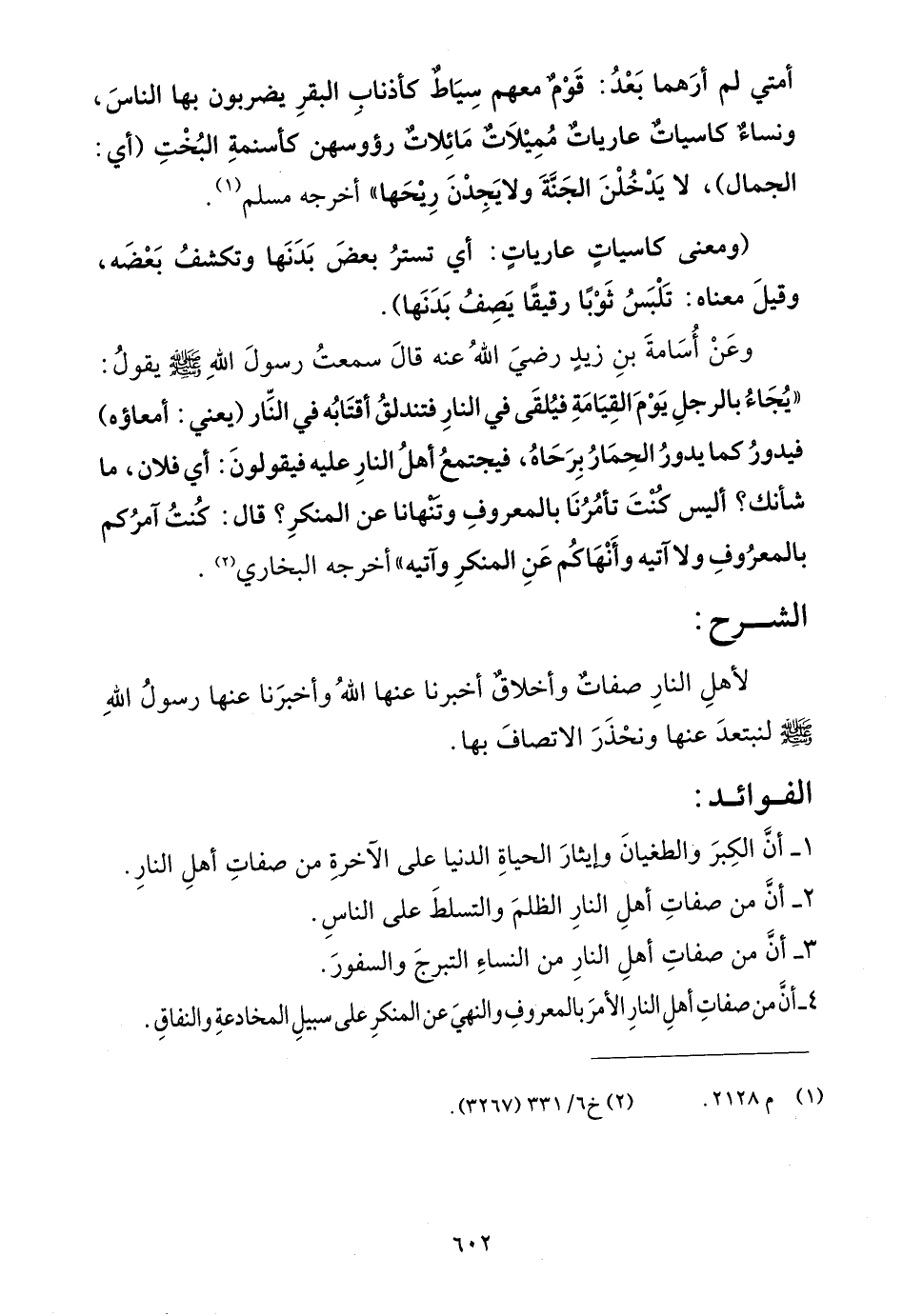 - أن صفات أهل النار الأمر بالمعروف والنهي عن المنكر على سبيل المخادعة والنفاق.