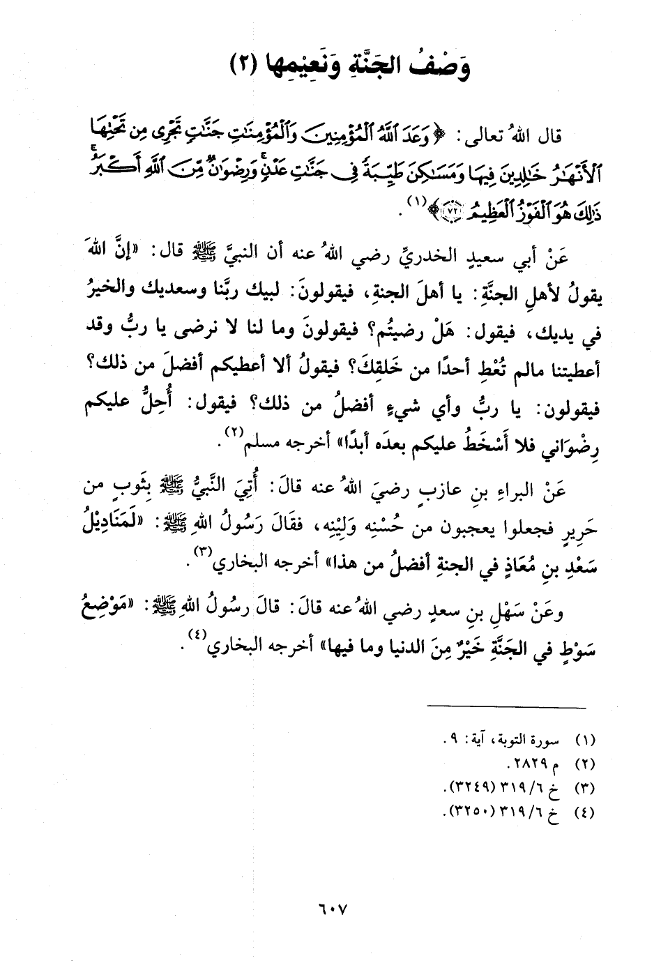 قال الله تعالى: {وَعَدَ اللهُ الْمُؤْمِنِينَ وَالْمُؤْمِنَاتِ جَنَّاتٍ تَجْرِي مِن تَحْتِهَا الأَنْهَارُ خَالِدِينَ فِيهَا وَمَسَاكِنَ طَيِّبَةً فِي جَنَّاتِ عَدْنٍ وَرِضْوَانٌ مِّنَ اللهِ أَكْبَرُ ذَلِكَ هُوَ الْفَوْزُ الْعَظِيمُ} (¬1).