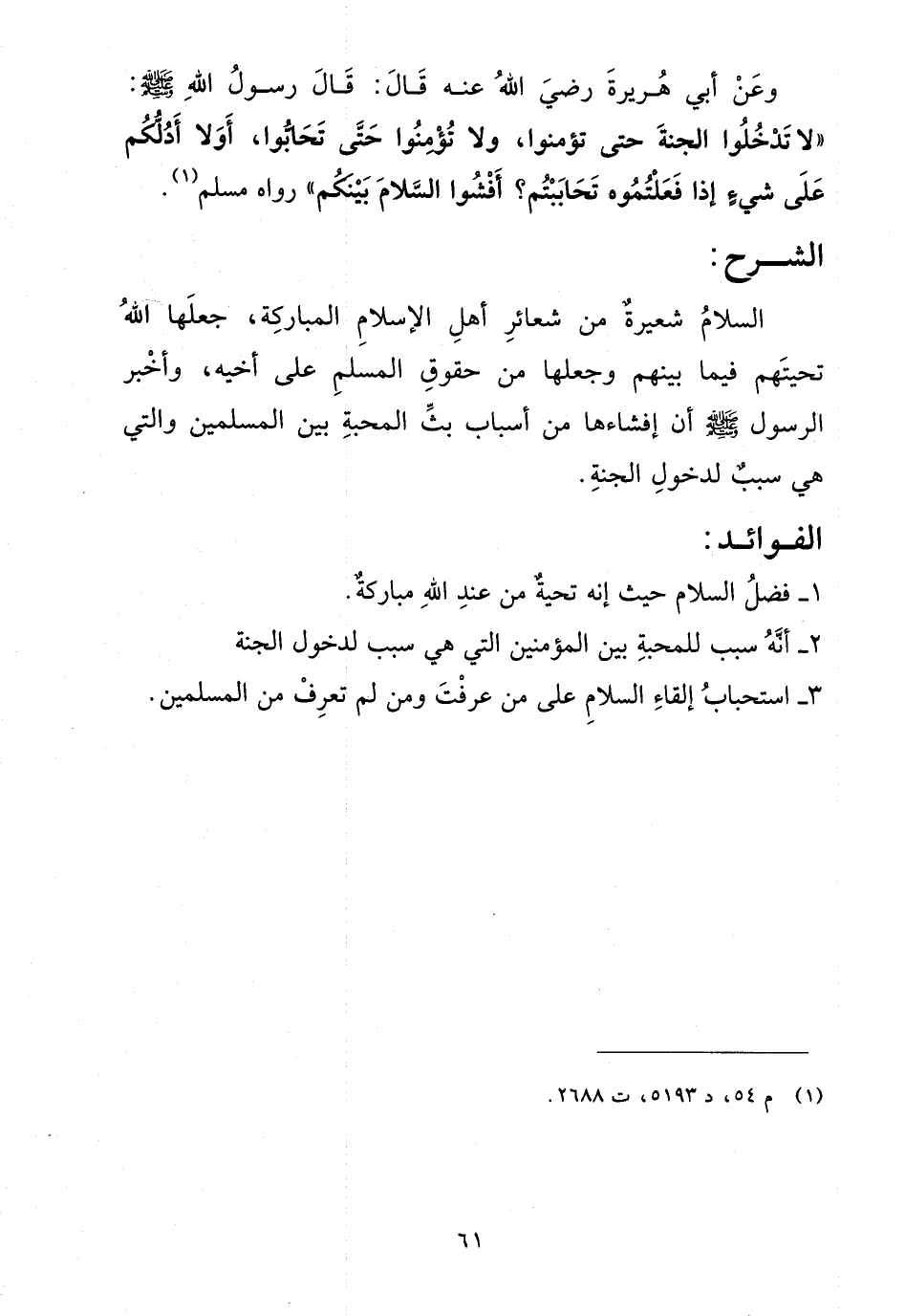 - فضل السلام حيث إنه تحية من عند الله مباركة.