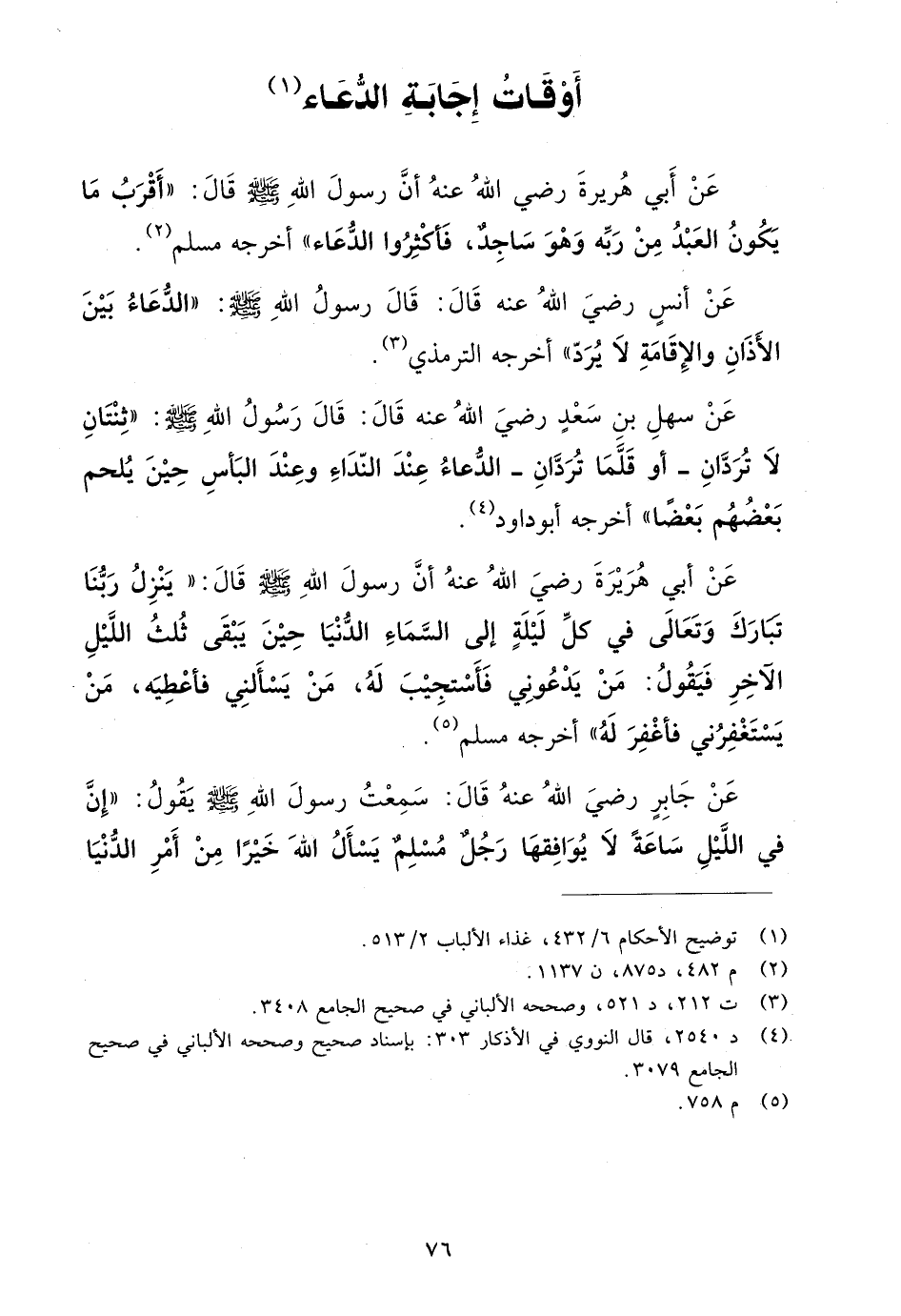 عن جابر رضي الله عنه قال: سمعت رسول الله صلى الله عليه وسلم يقول: "إن في الليل ساعة لا يوافقها رجل مسلم يسأل الله خيراً من أمر الدنيا