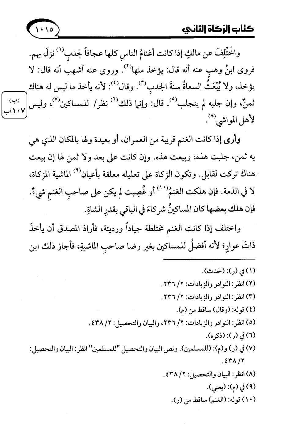 (¬5) انظر: النوادر والزيادات: 2/ 236، والبيان والتحصيل: 2/ 438.