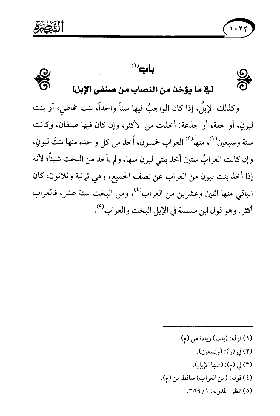 باب (¬1) [في ما يؤخذ من النصاب من صنفي الإبل]