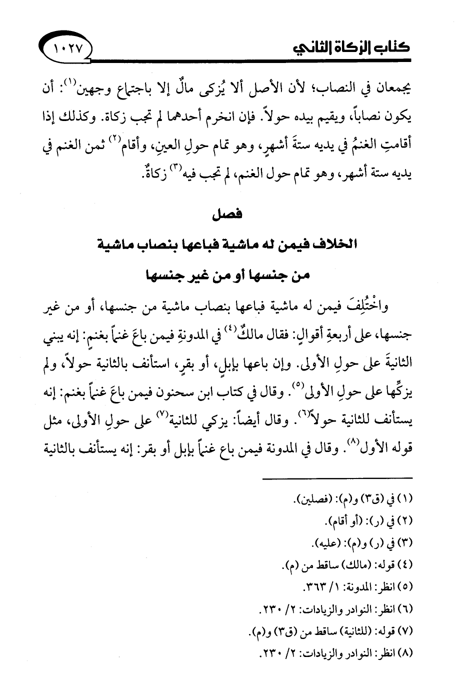 (¬8) انظر: النوادر والزيادات: 2/ 230.