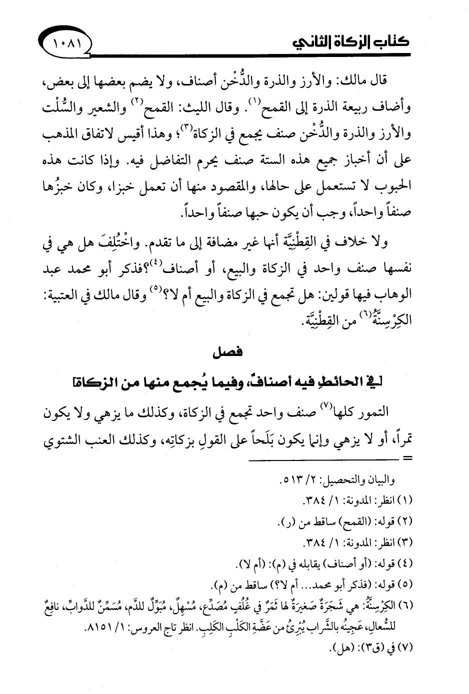 ولا خلاف في القِطْنِيَّة أنها غير مضافة إلى ما تقدم. واخْتُلِفَ هل هي في نفسها صنف واحد في الزكاة والبيع، أو أصناف (¬4)؟ فذكر أبو محمد عبد الوهاب فيها قولين: هل تجمع في الزكاة والبيع أم لا؟ (¬5) وقال مالك في العتبية: الكِرْسِنَّةُ (¬6) من القِطْنِيَّة.