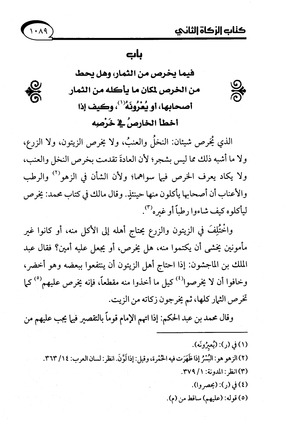 باب فيما يخرص من الثمار، وهل يحط من الخرص لمكان ما يأكله من الثمار أصحابها، أو يُعْرُونَهُ (¬1)، وكيف إذا أخطأ الخارصُ في خَرْصِه