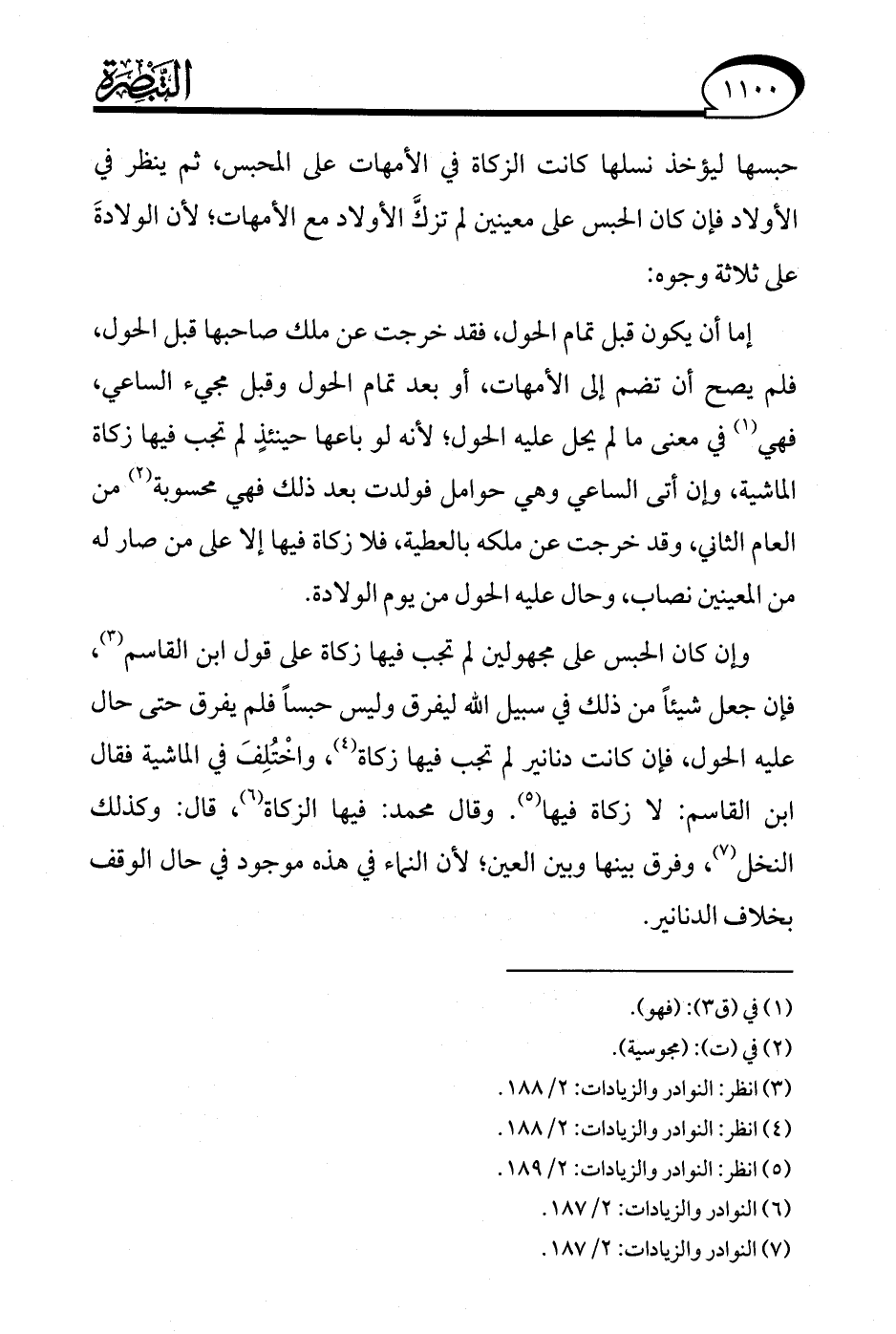 (¬3) انظر: النوادر والزيادات: 2/ 188.