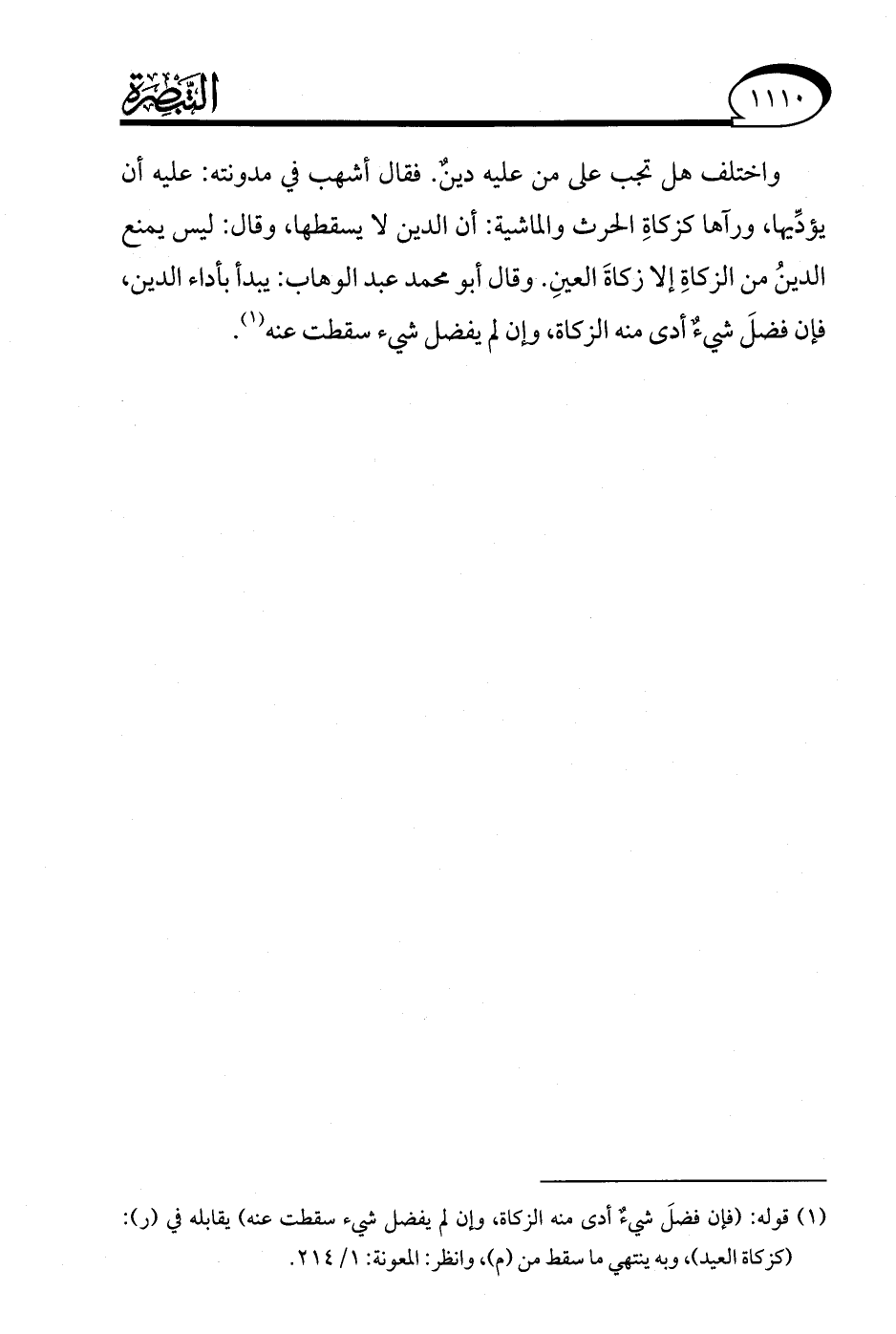 (¬1) قوله: (فإن فضلَ شيءٌ أدى منه الزكاة، وإن لم يفضل شيء سقطت عنه) يقابله في (ر): (كزكاة العيد)، وبه ينتهي ما سقط من (م)، وانظر: المعونة: 1/ 214.