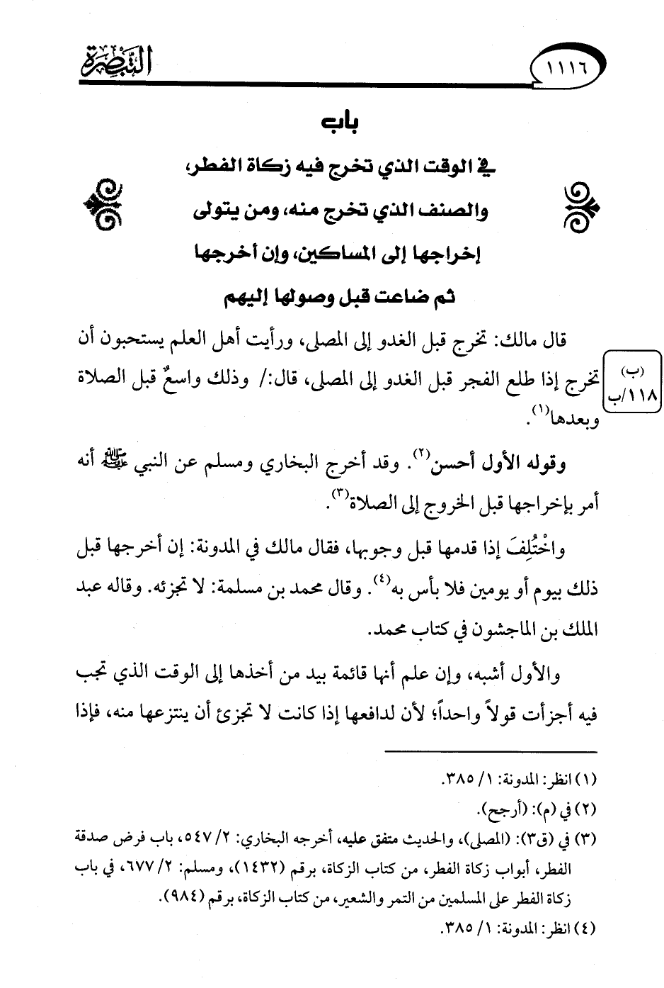 (¬3) في (ق 3): (المصلى)، والحديث متفق عليه، أخرجه البخاري: 2/ 547، باب فرض صدقة الفطر، أبواب زكاة الفطر، من كتاب الزكاة، برقم (1432)، ومسلم: 2/ 677، في باب زكاة الفطر على المسلمين من التمر والشعير، من كتاب الزكاة، برقم (984).