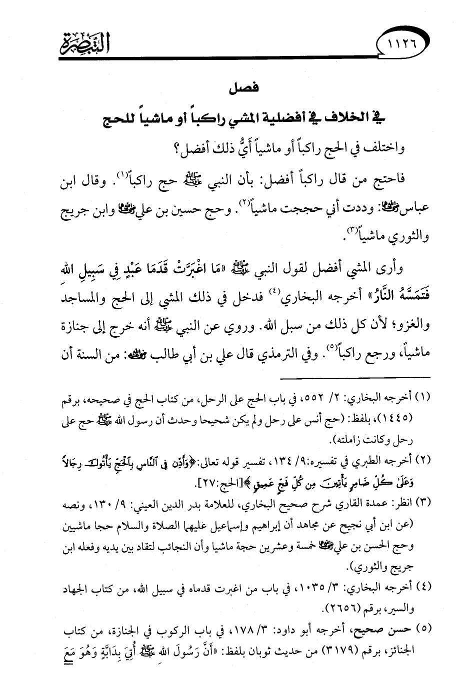 (¬3) انظر: عمدة القاري شرح صحيح البخاري، للعلامة بدر الدين العيني: 9/ 130، ونصه (عن ابن أبي نجيح عن مجاهد أن إبراهيم وإسماعيل عليهما الصلاة والسلام حجا ماشيين وحج الحسن بن علي - رضي الله عنهما - خمسة وعشرين حجة ماشيا وأن النجائب لتقاد بين يديه وفعله ابن جريج والثوري).