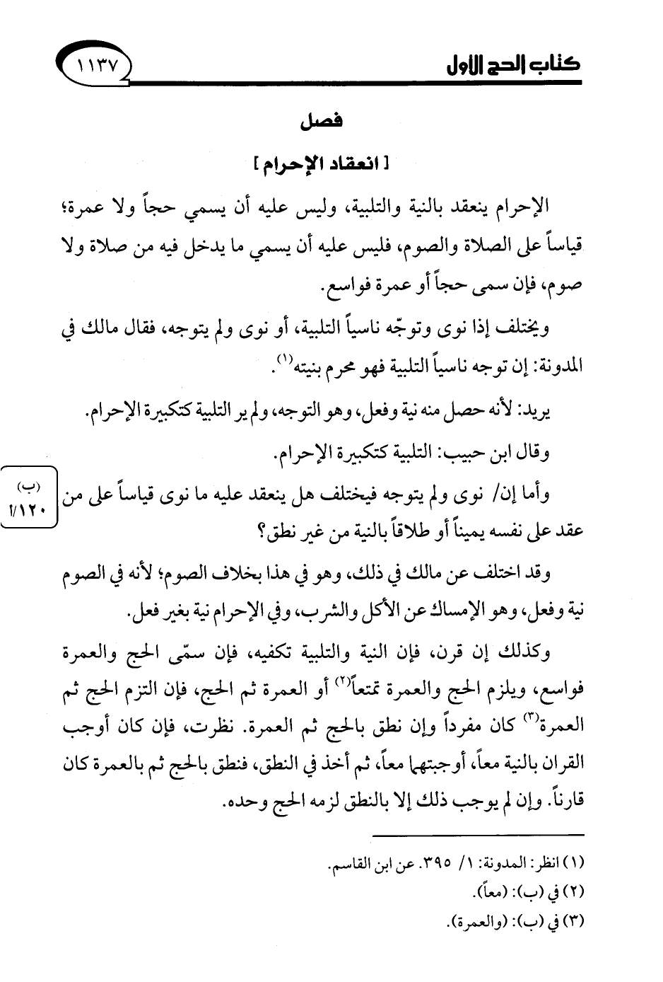 (¬1) انظر: المدونة: 1/ 395. عن ابن القاسم.