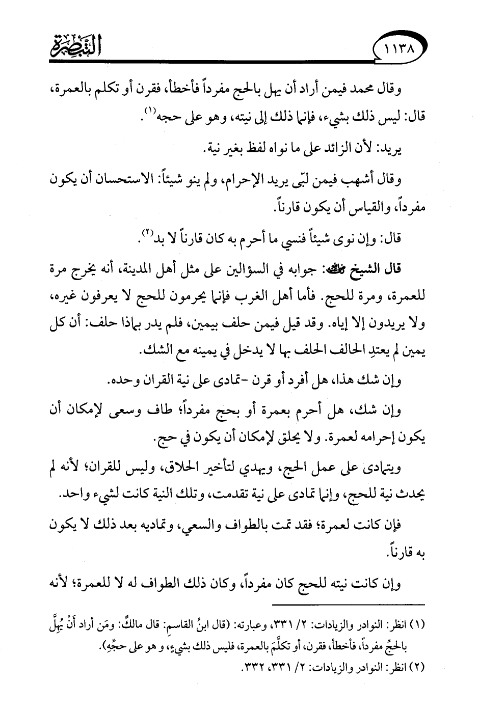 (¬2) انظر: النوادر والزيادات: 2/ 331، 332.