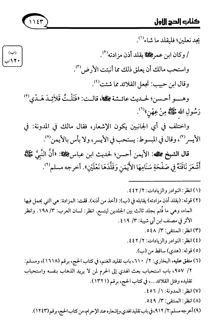 (¬9) أخرجه مسلم: 2/ 912، في باب تقليد الهدي وإشعاره عند الإحرام، من كتاب الحج، برقم (1243).