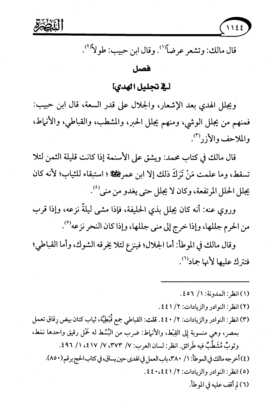 (¬3) انظر: النوادر والزيادات: 2/ 440. قلت: القباطي جمع قُبْطِيَّة، ثياب كتان بيض رِقاق تعمل بمصر، وهي منسوبة إِلى القِبْط، والأنماط: ضرب من البُسُط له خَمْل رقيق واحدها نمَط، وثوبٌ مُشَطَّبٌ فيه طَرائق. انظر: لسان العرب: 7/ 373، 7/ 417، 1/ 496.