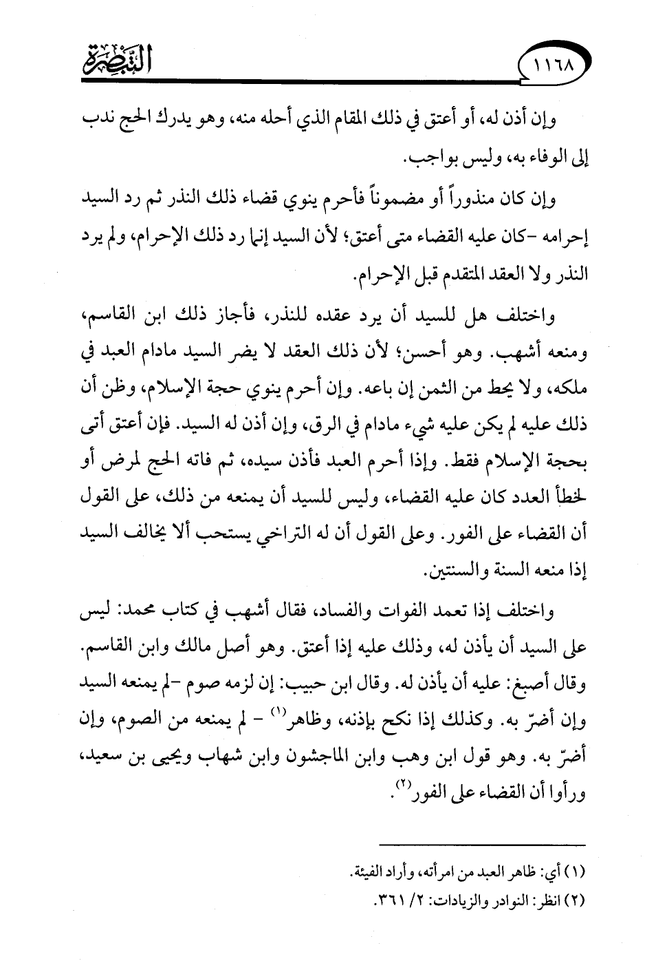 (¬2) انظر: النوادر والزيادات: 2/ 361.