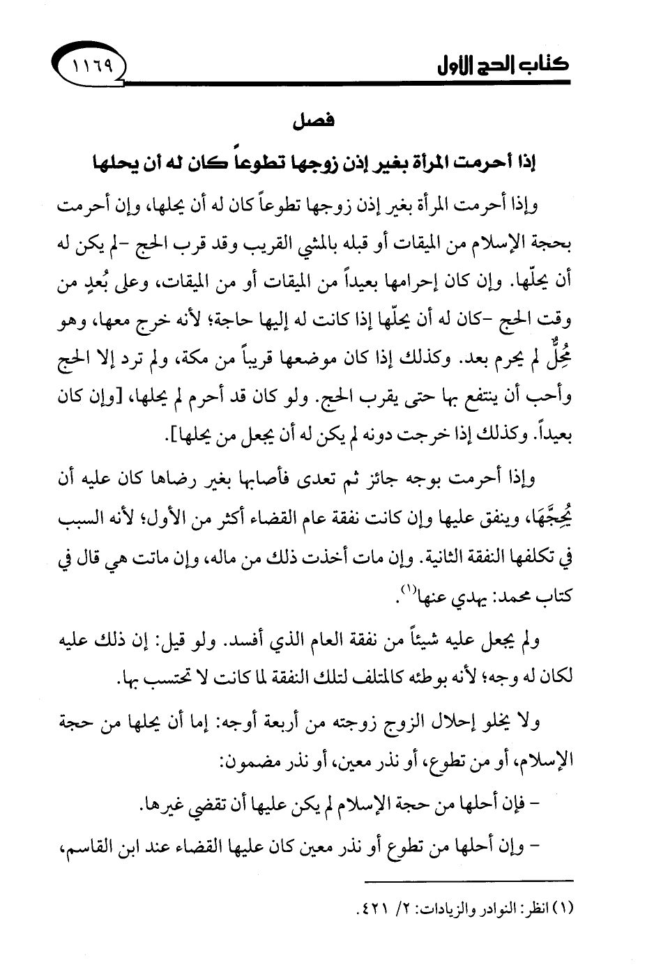 (¬1) انظر: النوادر والزيادات: 2/ 421.