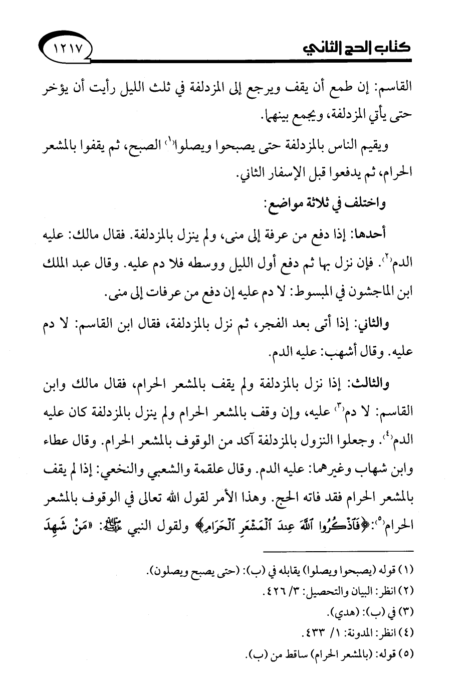 (¬5) قوله: (بالمشعر الحرام) ساقط من (ب).