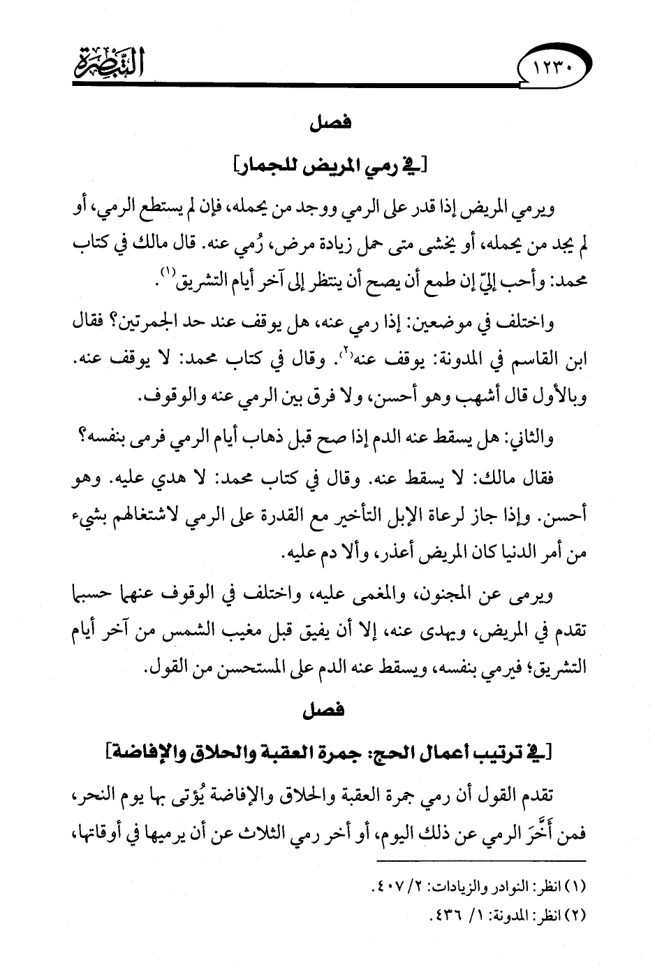 (¬1) انظر: النوادر والزيادات: 2/ 407.