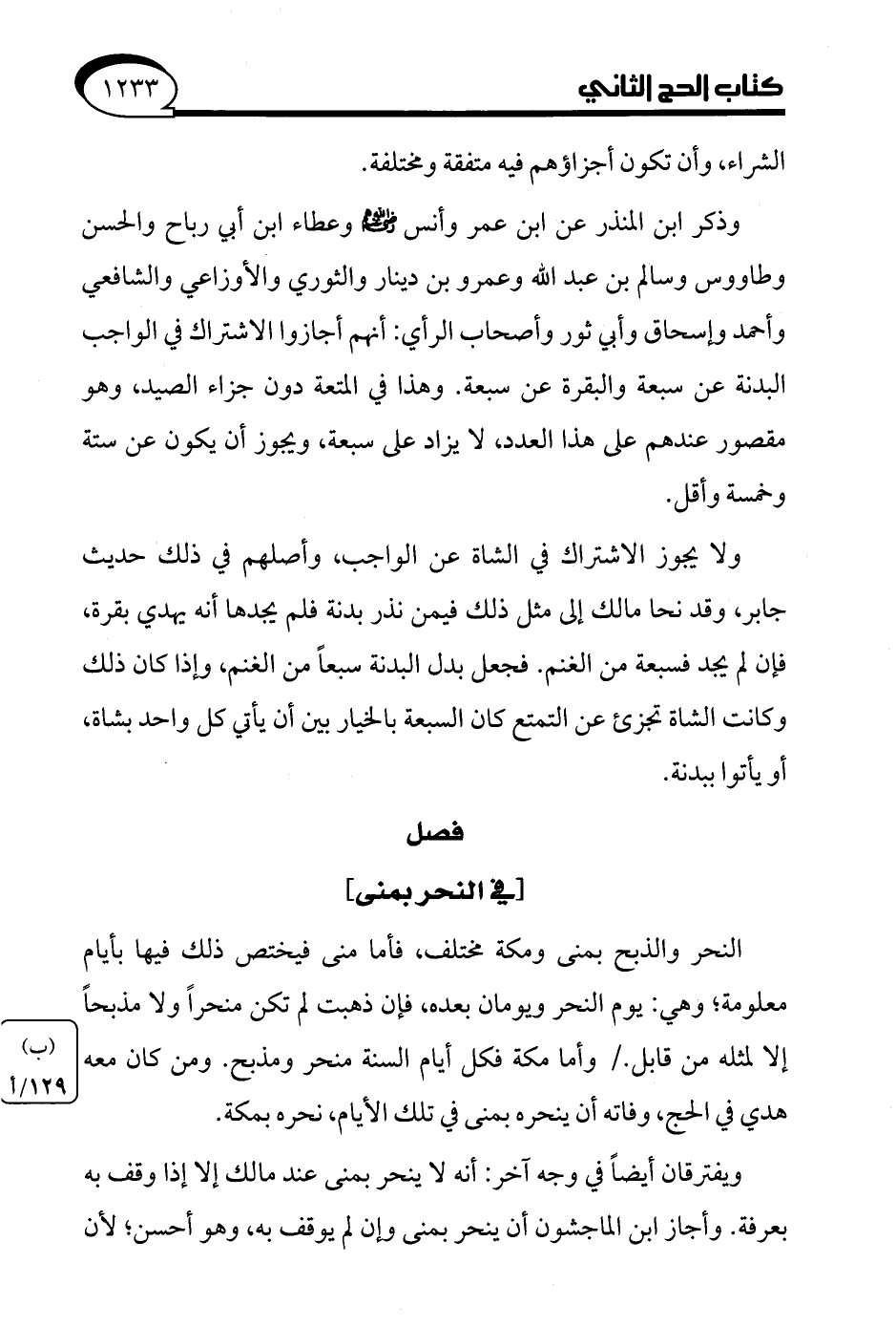 ويفترقان أيضًا في وجه آخر: أنه لا ينحر بمنى عند مالك إلا إذا وقف به بعرفة. وأجاز ابن الماجشون أن ينحر بمنى وإن لم يوقف به، وهو أحسن؛ لأن