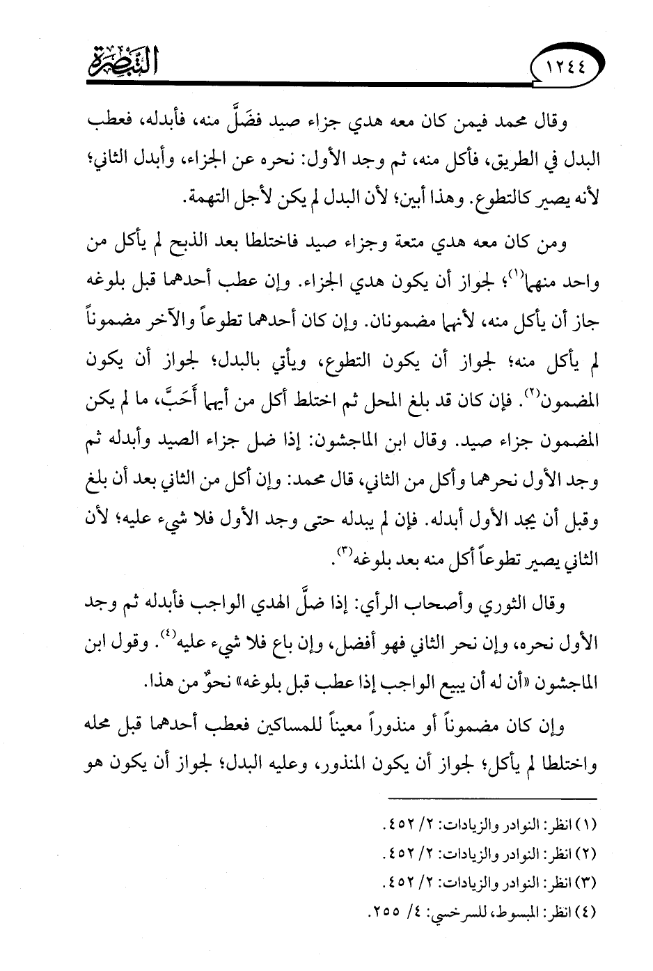 (¬3) انظر: النوادر والزيادات: 2/ 452.