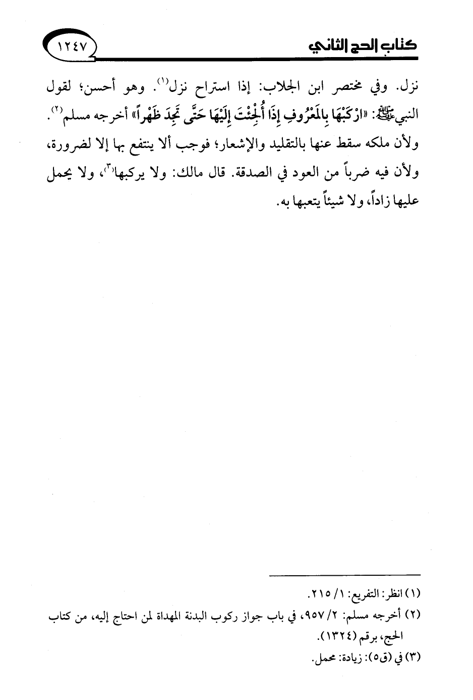 (¬2) أخرجه مسلم: 2/ 957، في باب جواز ركوب البدنة المهداة لمن احتاج إليه، من كتاب الحج، برقم (1324).