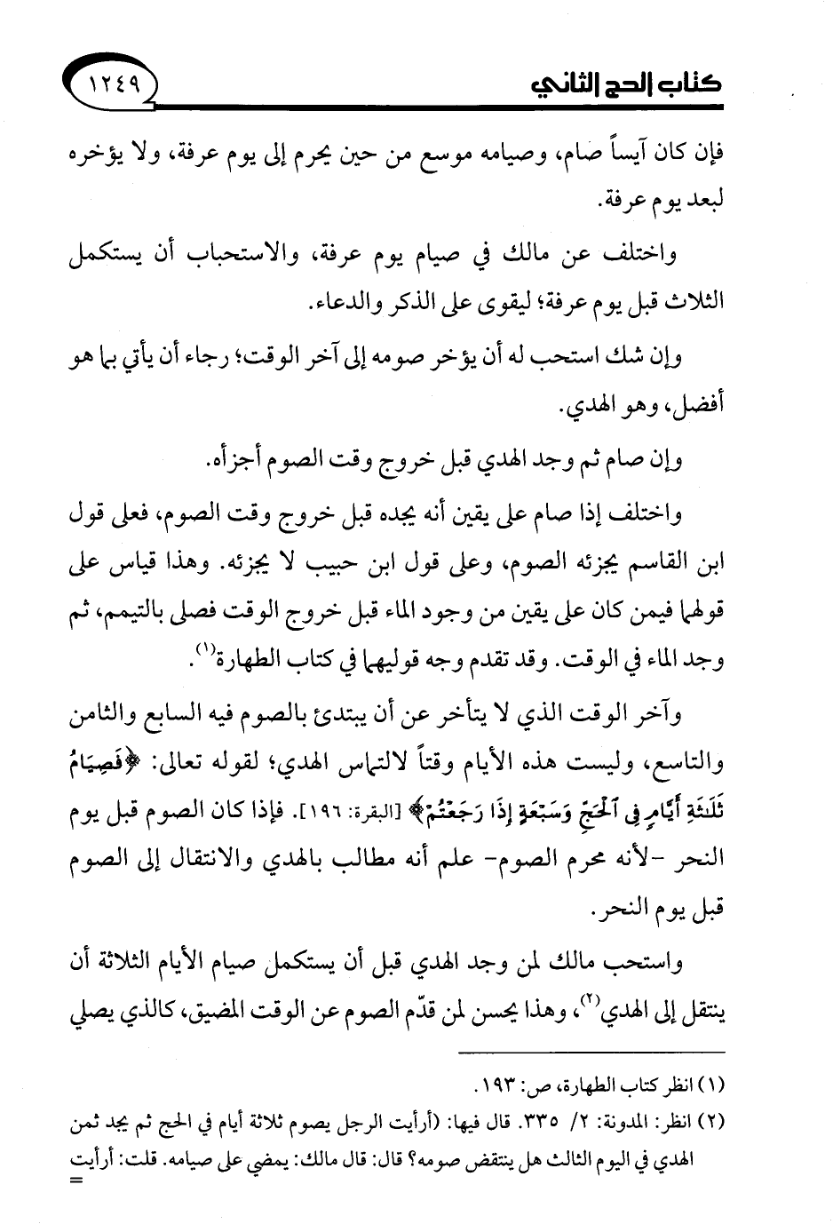 (¬2) انظر: المدونة: 2/ 335. قال فيها: (أرأيت الرجل يصوم ثلاثة أيام في الحج ثم يجد ثمن الهدي في اليوم الثالث هل ينتقض صومه؟ قال: قال مالك: يمضي على صيامه. قلت: أرأيت =