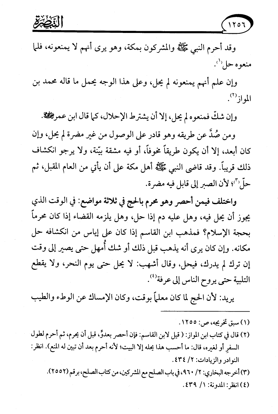 (¬2) قال في كتاب ابن المواز: (قيل لابن القاسم: فكان أحصر بعدوٍّ، قبل أن يحرم، ثم أحرم لطول السفرِ أو لغيره، قال: ما أحسب هذا يحله إلا البيت؛ لأنه أحرم بعد أن تبين له المنع). انظر: النوادر والزيادات: 2/ 434.