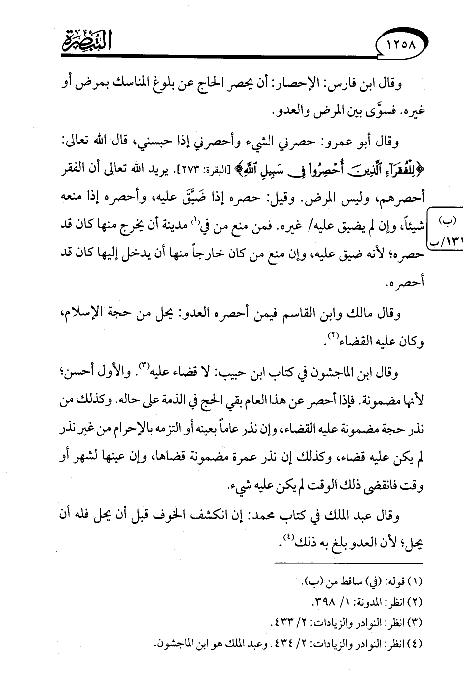 (¬3) انظر: النوادر والزيادات: 2/ 433.