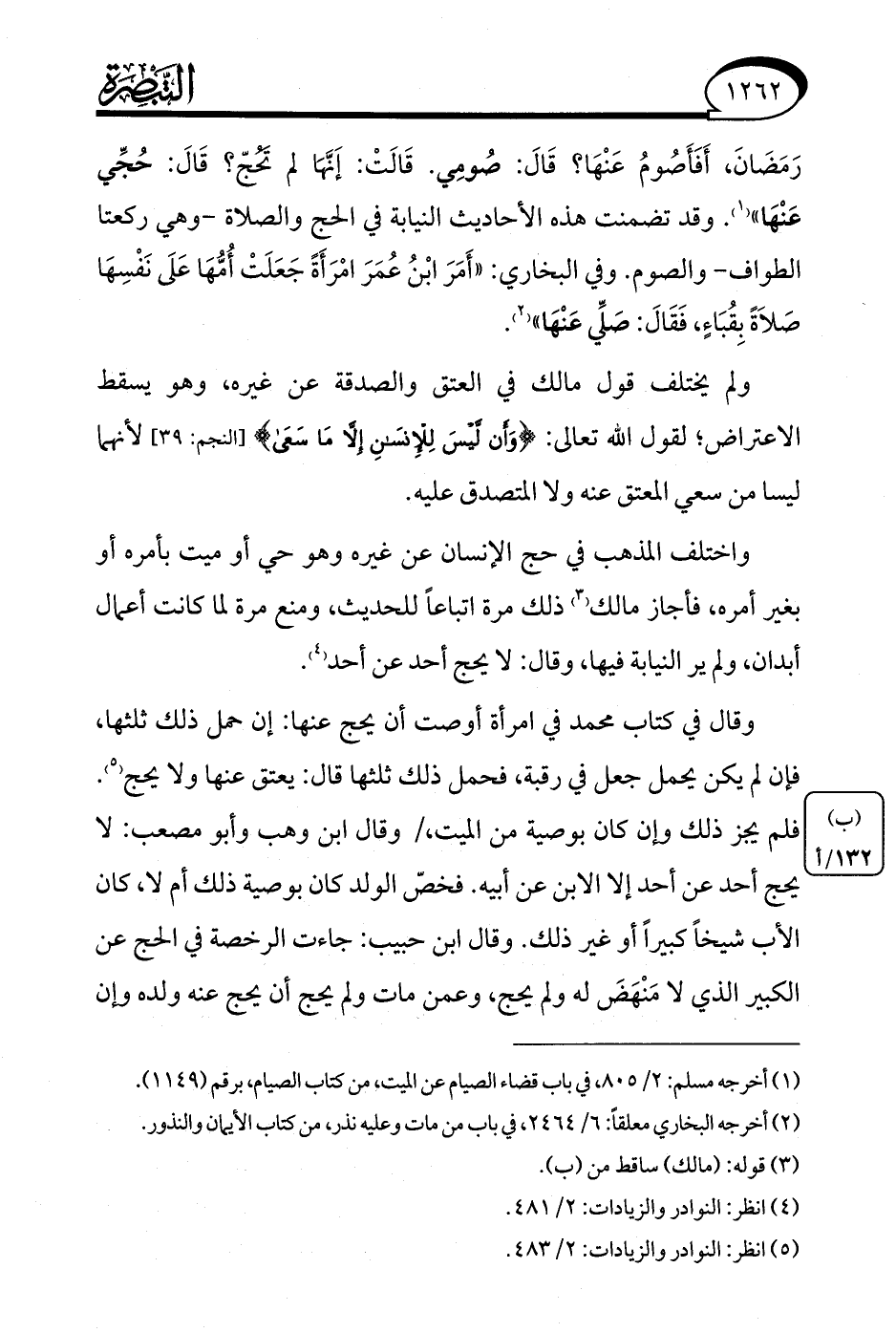 (¬5) انظر: النوادر والزيادات: 2/ 483.