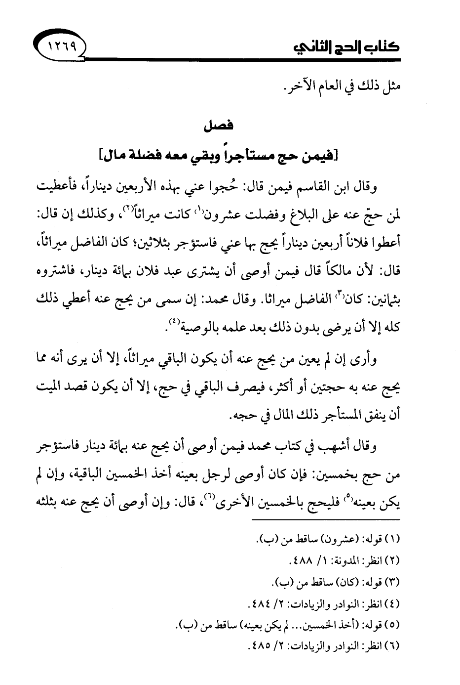(¬6) انظر: النوادر والزيادات: 2/ 485.