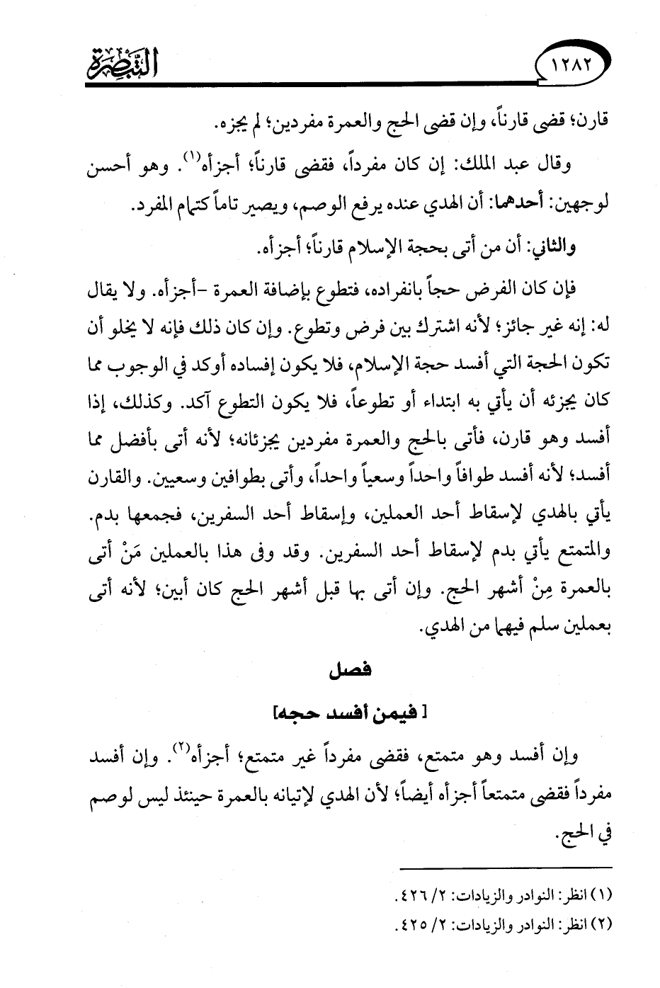 (¬2) انظر: النوادر والزيادات: 2/ 425.