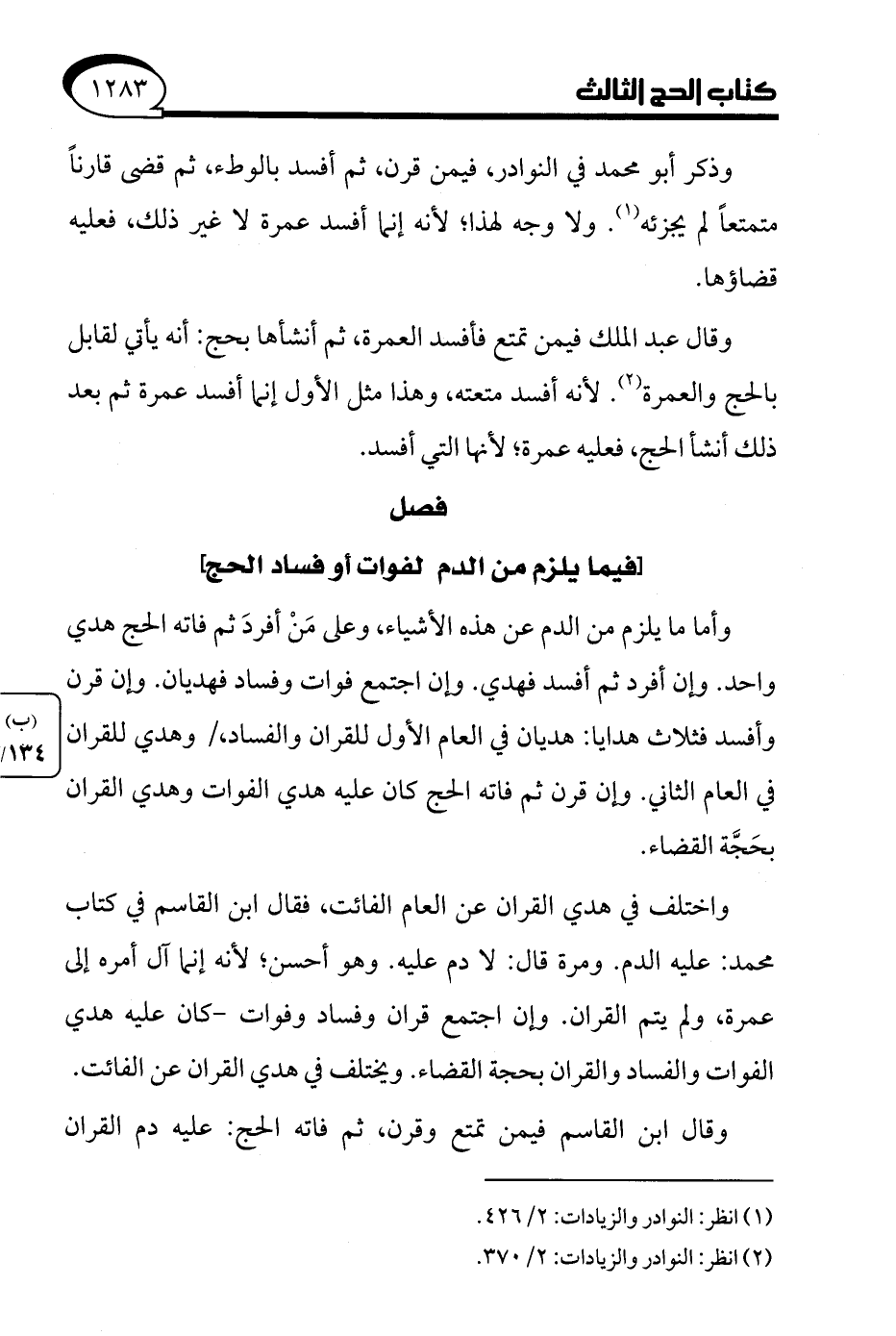 (¬2) انظر: النوادر والزيادات: 2/ 370.