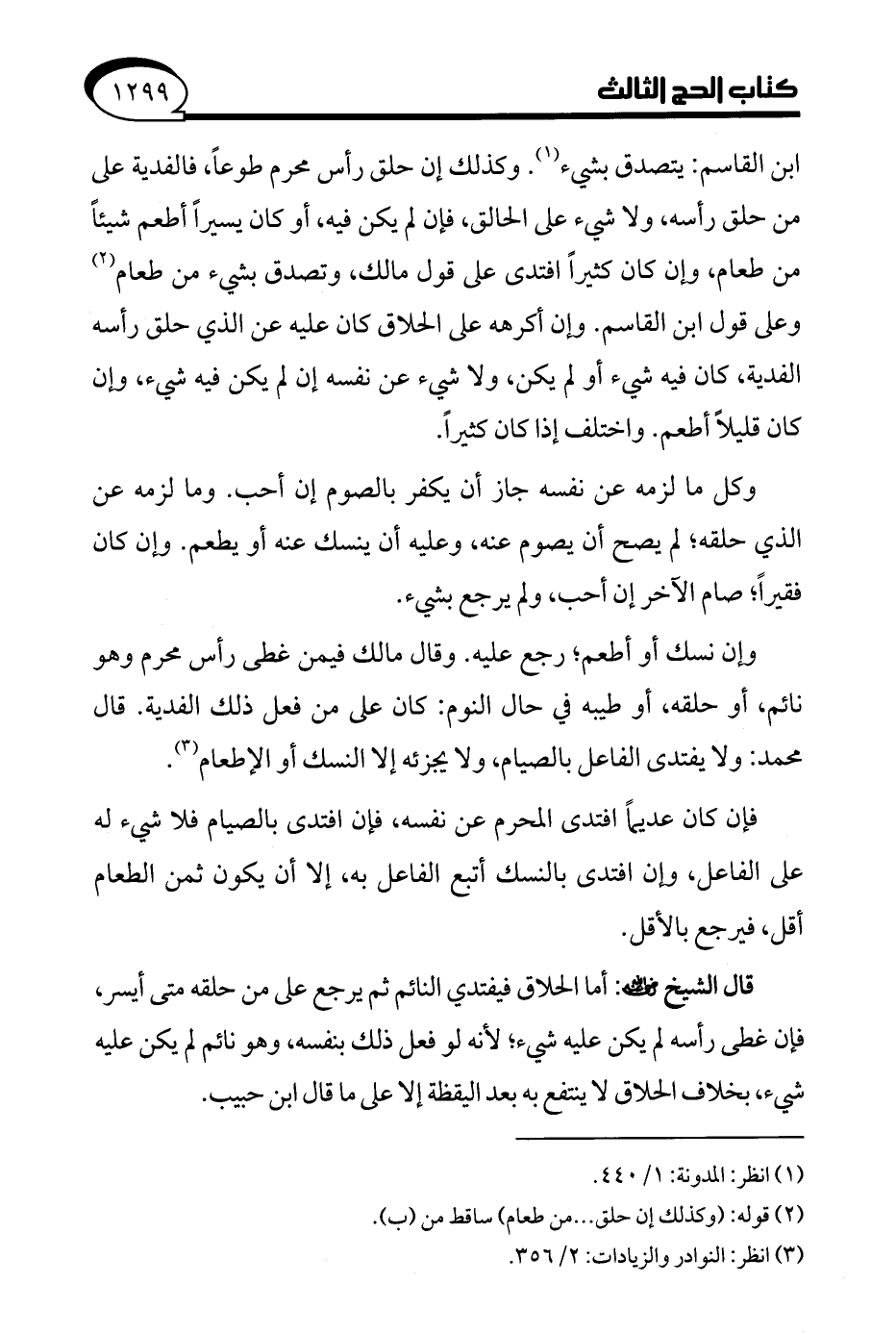 (¬3) انظر: النوادر والزيادات: 2/ 356.
