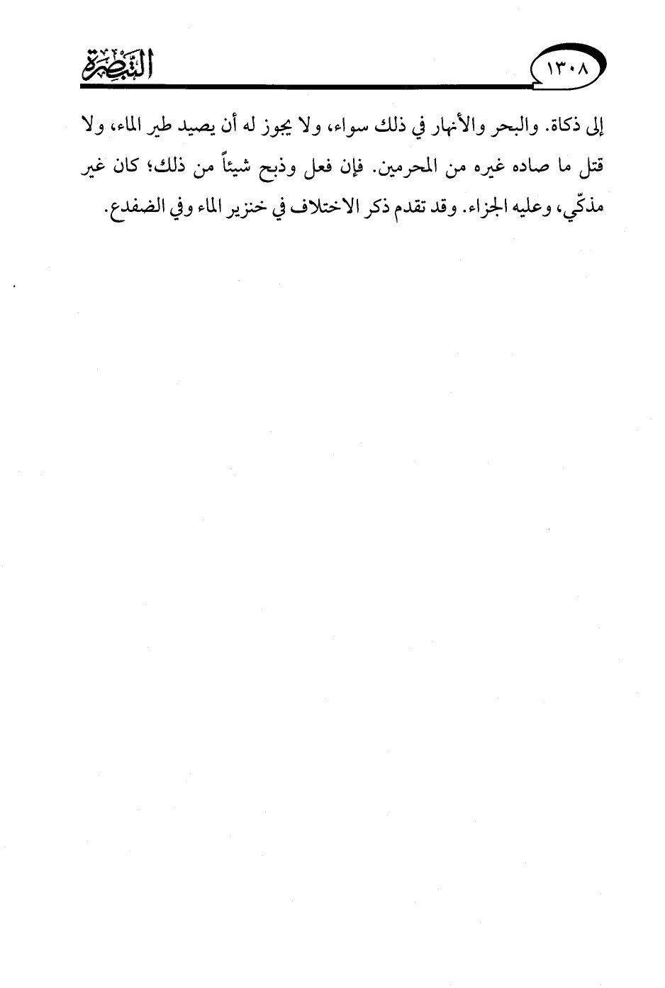 إلى ذكاة. والبحر والأنهار في ذلك سواء، ولا يجوز له أن يصيد طير الماء، ولا قتل ما صاده غيره من المحرمين. فإن فعل وذبح شيئًا من ذلك؛ كان غير مذكّي، وعليه الجزاء. وقد تقدم ذكر الاختلاف في خنزير الماء وفي الضفدع.